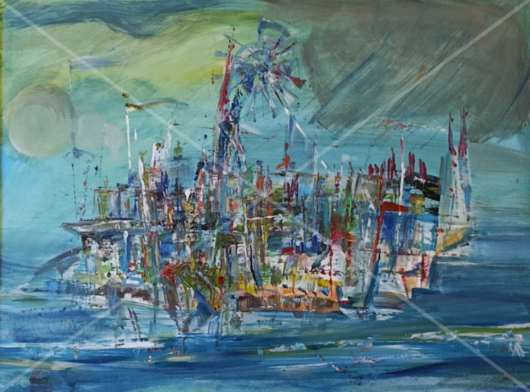SABINE JUST nähert sich diesen Szenarien spielerisch und vor allem mit Malerei. Die Betrachter sollten jedenfalls den „Faden“ aufnehmen und auch ein wenig fabulieren, träumen, phantasieren und auch weiterspinnen.